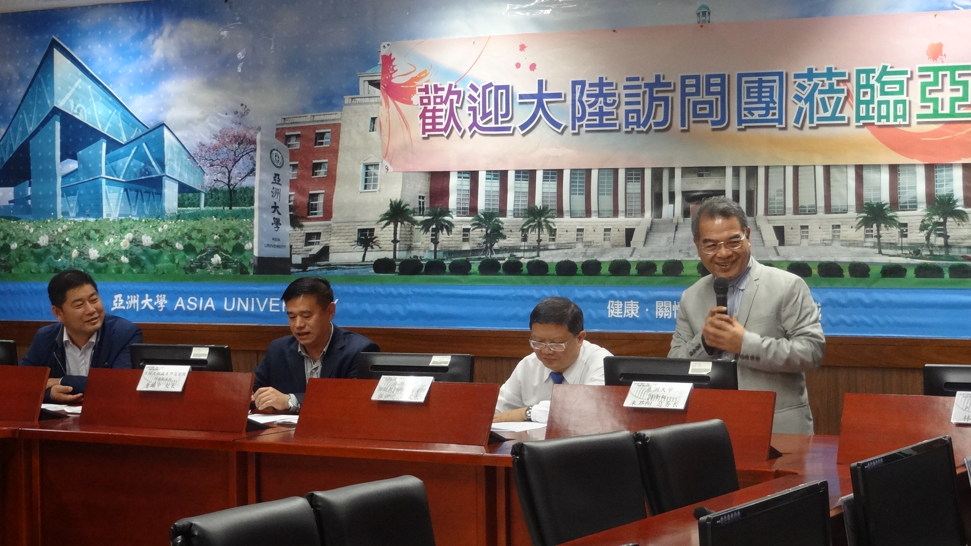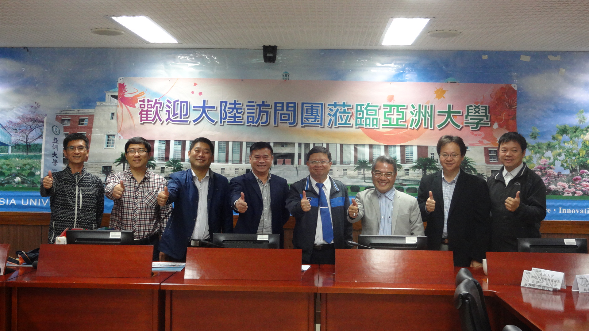 大陸吉林工程技術師範學院創業就業處處長董鵬中、學生工作處處長于彥民等一行人,12月16日到亞洲大學(Asia University, Taiwan)參訪,受到亞洲大學總務長朱界陽、國際及兩岸教育學院副院長兼兩岸學術交流中心主任張世忠、產學處創新中心主任林銘昌及兩岸學術交流中心副主任陳朝鍵等人接待、歡迎。 國際及兩岸教育學院副院長張世忠指出,吉林工程技術師範學院與亞大近年交流密切,下學期將有7位師生至亞大研修;亞大創校15年,榮獲英國泰晤士報高教特刊評為全球「3個百大」大學,亞大學生上個月參加2015韓國首爾國際發明展,獲14面獎牌,且學校每個系都與企業實習合作,強調學生把專業變成技能,品牌結合實習,保證學生就業,最重要的是把現今學校所學變成未來職場上的技能,並學以致用。 吉林工程技術師範學院創業就業處處長董鵬中介紹說,該院簡稱吉工師,創建於1979年,是東北三省和內蒙古地區唯一獨立設置的全日制本科職業師範院校,被譽為職業教育師資的搖籃。今年7月該校組創新創業交流論壇,朱界陽總務長的風采令人佩服,此次來亞大參訪,除了聯絡感情、互相交流外,也是取經、學習。 總務長朱界陽今年7月到吉林工程技術師範學院參加長白山論壇,收獲多,他表示,大陸高校進步良多,通識課程4年前還未成立,4年後卻已轉型成功;創校15年的進步快速,除了連續11年獲教育部評為「教學卓越大學」,現已躋身英國泰晤士報「三個百大」大學;在學生就業方面上,提供三導師制度、職涯測驗及課業輔導老師,如推出「曼陀師」全校家族化計畫行動,全心照顧學生,除了關照生活,課業學習也能精進成長;創意設計學院學生近年來在德國紅點獎、IF設計及日本G-Mark國際設計獎獲獎連連,表現優異;同時推動志工大學,理念是「推己及人,兼善天下」,透過志工學習,學生學習做人處事道理,並學以致用。