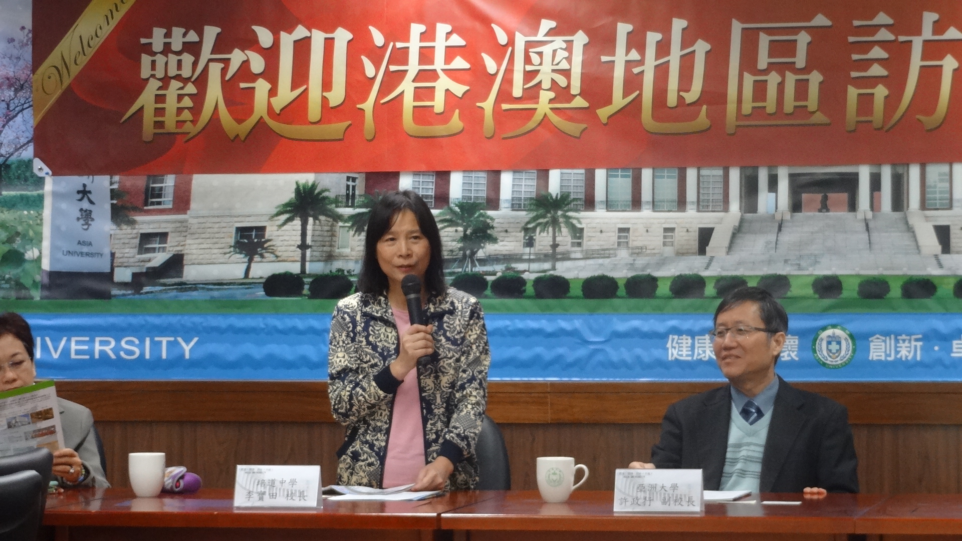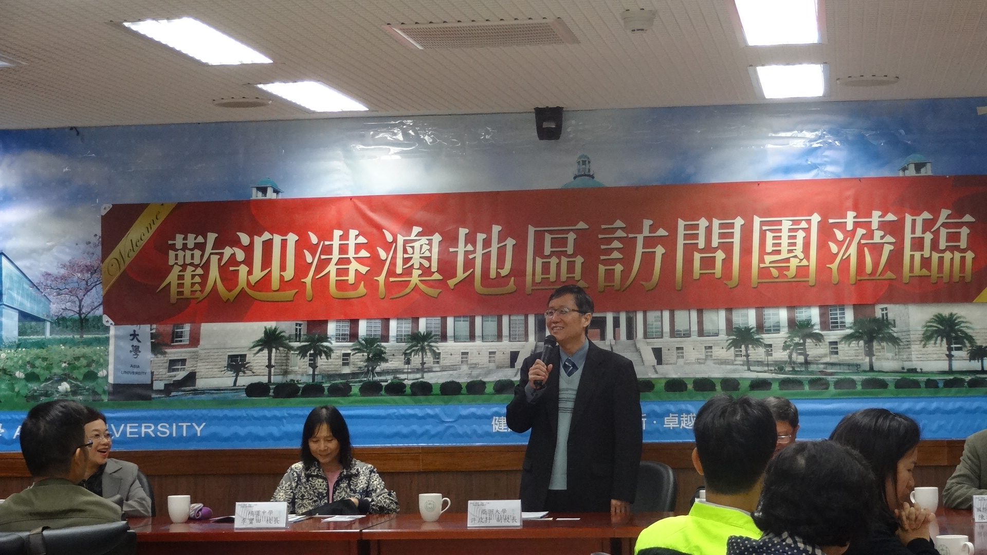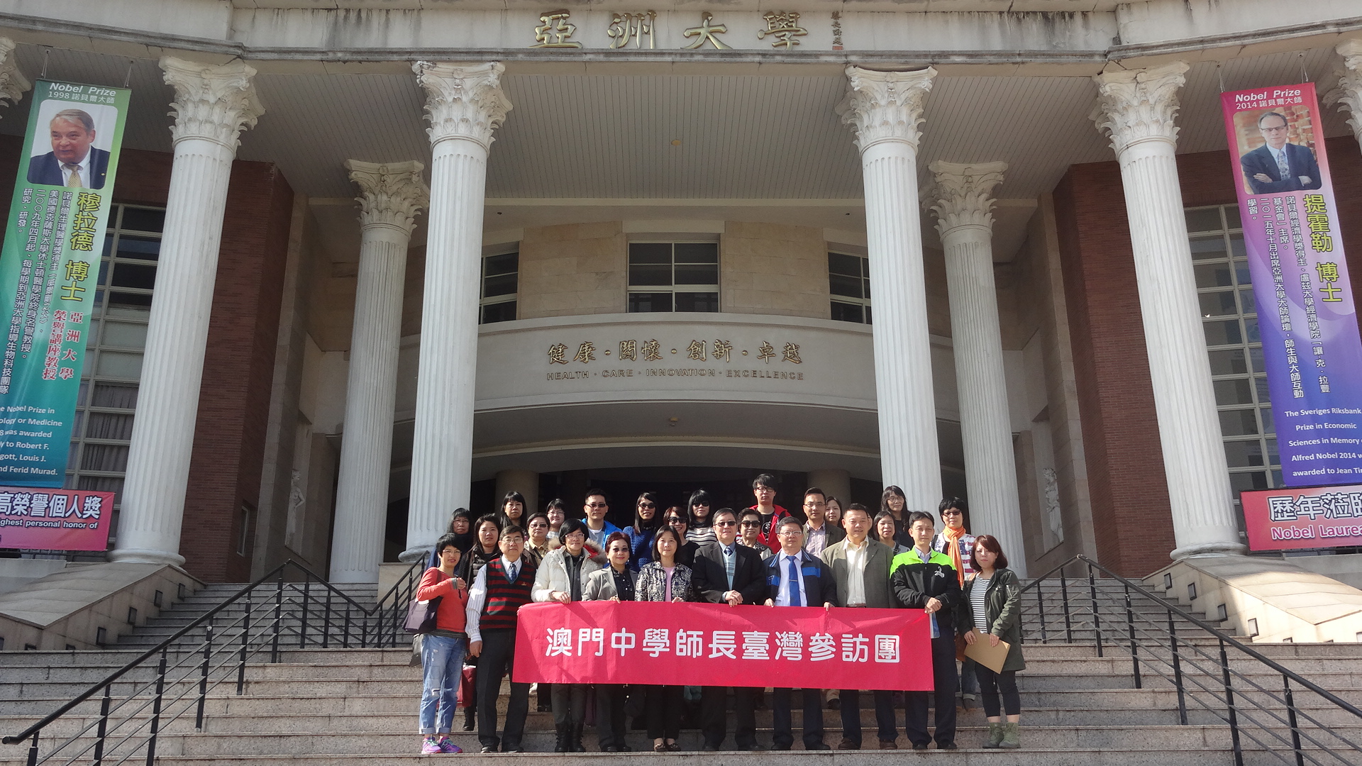 澳門事務處組長李佩儒率領澳門培道中學校長李寶田、聖若瑟中學副校長林蓮麗等澳門中學等25位師長,12月22日到亞洲大學(Asia University, Taiwan)參訪,受到亞洲大學副校長許政行、國際及兩岸教育學院副院長兼兩岸學術交流中心主任張世忠等人接待、歡迎。 亞大副校長許政行說,亞大創校15年,學生獲得德國紅點、iF設計大獎等,共獲200多件獎牌,日本G-Mark國際設計獎,更是台灣學生第1次獲獎,且一次2件 ,創下空前紀錄,表現亮麗!學校朝國際化發展,領先全國設「全英語授課的碩士學位學程」,並邀諾貝爾大師蒞校講學,也開放高中生至本校聽講,師生親炙向大師請益,給老師帶來很大的鼓勵;與亞大合作實習的企業,其中有跨國企業的公司,學生以後也能選擇回澳門品牌企業就業,亞大實習保證就業。 澳門培道中學校長李寶田說,亞大是澳門同學常選擇就讀的學校,澳門大學都沒有生物科技學系,希望多一點這方面學習;澳門出生率高,但幼兒教育師資不夠,現今非常需要這方面人才,透過這次參訪,可以與亞大學習、交流。 亞大國際及兩岸教育學院副院長張世忠簡報,介紹目前有46位澳門學位生在亞大就學,亞大是所具潛力、不一樣的大學,創校15年即榮獲泰晤士報評為「三個百大」大學、經濟部能源局節能傑出獎,並連續11年獲教學卓越計畫,亞洲現代美術館更是由國際大師安藤忠雄所設計,亞大體育館具羅馬競技場外表、也有宮殿外貌的行政大樓暨圖書館,附屬醫院將於2016年營運,推廣三品書院、四創學園,培養學生成為具人文藝術氣息的亞大人,此外,亞大所有科系皆結合企業實習,藉由品牌實習保證學生就業。 海星中學教師林紅貞說,印象中澳門到亞大的學生大多是幼教系、社工系,但她發現亞大創意設計學院很強,澳門很需要創意設計的學生,因現今發展文創,極需開展新興產業,以後會推薦學生選擇創意設計相關科系。 亞大兩岸學術交流中心副主任陳朝鍵回應指出,亞大實習紀錄會顯示在畢業學分數內,對於未來就業企業主也能從畢業學分內看見實習紀錄;另外,澳門觀光產業熱門,亞大有休閒與遊憩管理學系,對於休閒方面人才的需求,也日漸增高,歡迎澳門同學至亞大就學。 澳門培道中學校長李寶田希望亞大有專班提供澳門教師寒暑假有機會到亞大研習、交流;感謝此次參訪,讓她對亞大創校15年,即獲許多項成就以及發展,印象深刻。
