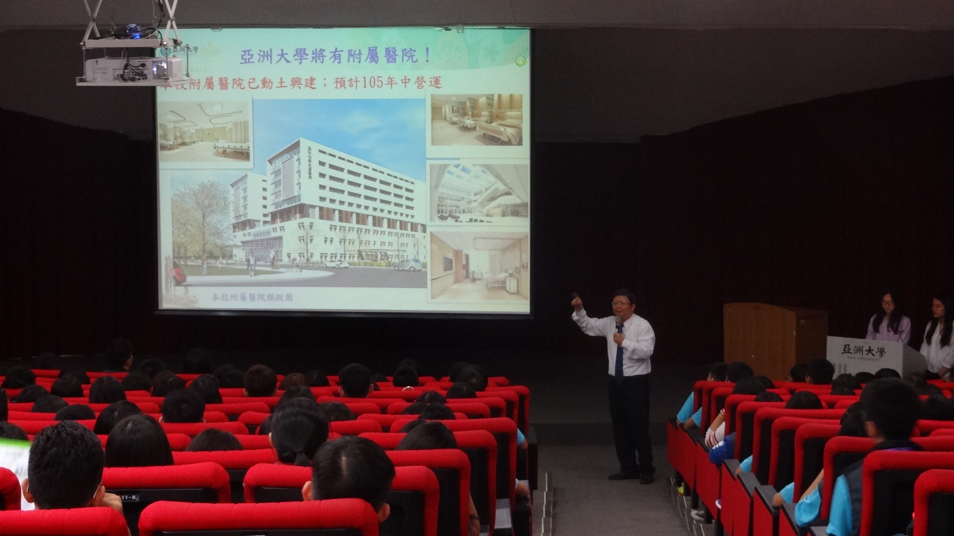 馬來西亞華裔青年台灣觀摩團320人,12月9日上午到亞洲大學(Asia University, Taiwan)參訪,受到亞洲大學副校長陳大正、產學營運處產學長林田富、管理學院院長陳明惠、國際及兩岸教育學院副院長兼兩岸學術交流中心主任張世忠、創新育成中心主任林銘昌、休憩系主任林宜欣等接待、歡迎。 亞大兩岸學術交流中心主任張世忠簡報說,亞大創校15年,即躋身英國泰晤士報全球、亞洲「三個百大」大學,並加速國際化腳步,陸續邀請14位諾貝爾得主蒞校訪問、演講、座談,另興建世界級的現代美術館,加強學生的美學教育;亞洲大學附屬醫院也將於明年營運,並與國外學校展開交流、合作;學生從大一起即培養就業能力,學校提供豐富專業課程,每個科系都有實習合作廠商、公司,學生透過實習,獲得技能與實作經驗,未來就業將能學以致用。 管理學院院長陳明惠表示,管理學院有經營管理學系等五個科系,4000多位學生,期許成為台灣地區頂尖私立大學商管學院之一,培養具關懷社會與創新思維的高階經理人才(EMBA);最近管院與上海財經大學展開合作、交流,明年將送學生到上海財經大學討論創業,與大陸交流。